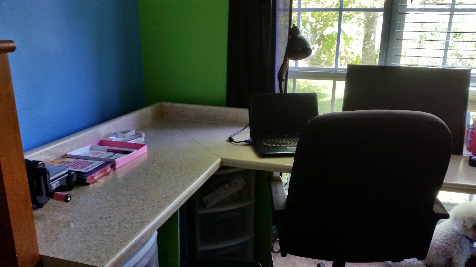 Hello fellow crafters. I hope you had a wonderful weekend. I just wanted to share what my hubby did for me over the weekend. He added a counter top to my work area and boy has it expanded my work space. He received the counter top for free and made some open cabinets for underneath. Now I have space to make the videos I want to share with everyone. The wall color looks a little strange in the pictures. They are blue and green (specifically blue and green from Monsters Inc.) from when our grandson lived with us for a year. I did not want paint at this time and the colors do make the room cheerful. Please, subscribe to my blog so that you can receive updates on projects I share. Next weekend I will have the instructional video up which shows you how to create the easiest mini album from a single piece of 12 x 12 cardstock. Happy Creating!!!