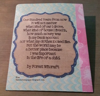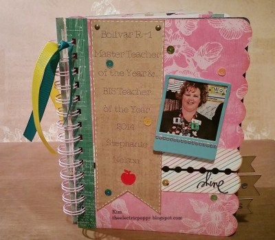 This is the finished album. I used the Bind-it-All for the binding using a 3/4″ o-wire…love this machine. This mini album was created for my BFF who is an incredible teacher and just a great lady!