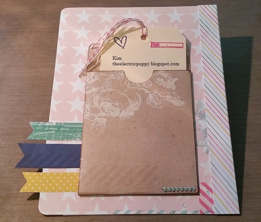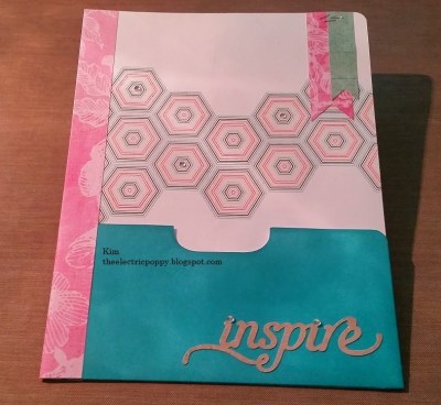 The outside of this pocket was white. I used Tim Holtz Distress Ink ‘Peacok Feathers’ to give it some color.