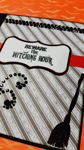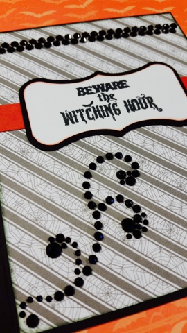 This Hocus Pocus title and label come from the ‘Potions and Spells’ cartridge. I used Glossy Accents on the letters after they were adhered. The little bling highlights are Itty Bitty Sparkles from Close to My Heart.