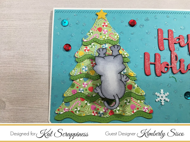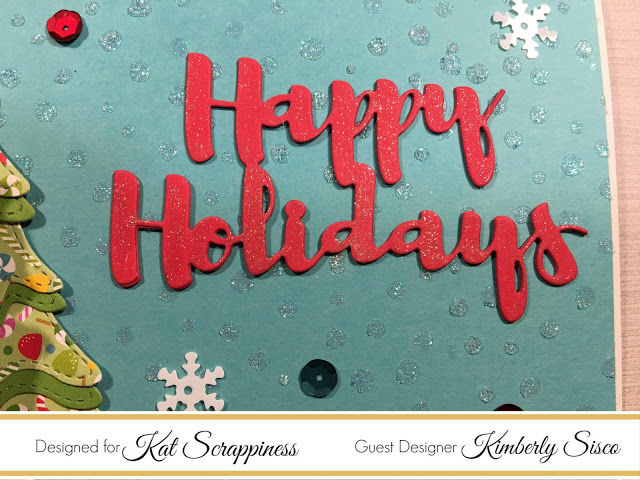 Hello Crafters! Kimberly here and it is my pleasure to be a Guest Designer for Kat Scrappiness. Today I am sharing a Christmas card which features the Stitched & Layered Christmas Tree Die by Kat Scrappiness; along with some wonderful products from her store.