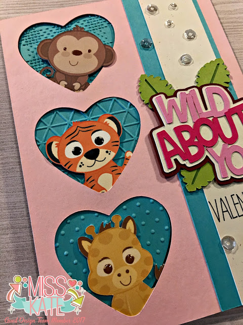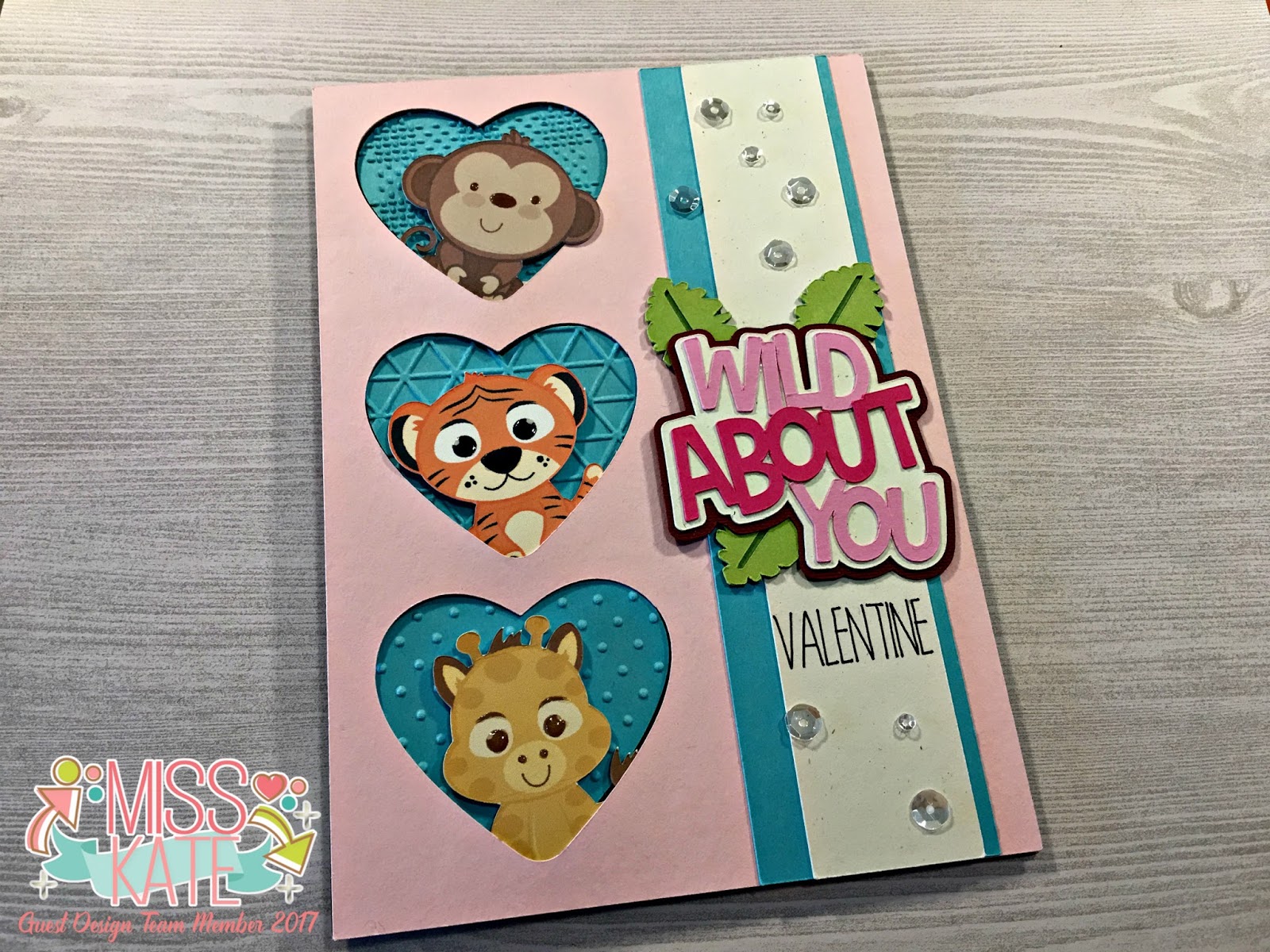 Hello, all! I am excited to share a Valentine’s Day card with you. And it is my pleasure to be guest designing for Miss. Kate Cuttables. When I found that I would be creating this card for the month of February I knew exactly what I wanted to create. This card features the following cut files from Miss. Kate Cuttables: Zoo Fun Bundle, Wild About You title, and Nested Hearts.