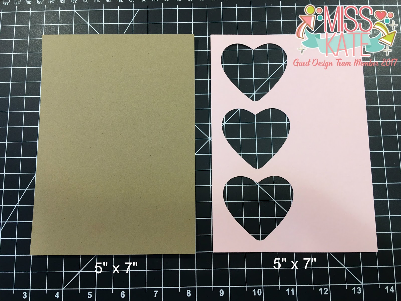 These are the hearts that I created from the Nested Heart file. They are the same size as the heart cut outs on the main panel. I used embossing folders to add texture. It is amazing what a difference this made. These hearts measure 2.19″ x 1.95″. Using my main pink panel as a template I adhered the hearts to the kraft panel; I show this process in the video.