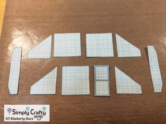These are the bones of the project. I used American Craft cardstock because it is a nice strong cardstock. When you import your SVGS you have the option to use the dashed score lines or the solid score lines. I chose to used the dashed score lines (which are tiny dash cuts) because there is a lot of folding in this project and the dashed score lines make folding a dream. Remember in Cricut Design Space you will need to attach the lines to the images before cutting (tip of the day).