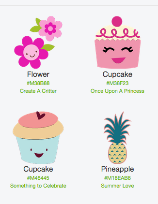 To create the cute pineapple I had to get creative (see images above). I used hide contour on the pineapple image to create a face area. And the eyes are from the pink cupcake and the mouth is from the blue cupcake. I used Basic Shapes circles to create the blush for her cheeks. There are so many creative possibilities with Cricut Design Space and the available images. Her flower is the flower without a face.