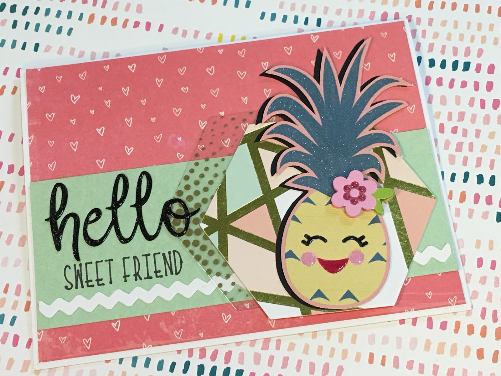 Hello Friends! Today I have a very sweet kawaii inspired card to share with you. I created this card in Cricut Design Space and all the images are available if you have the Cricut Access Subscription. I have been wanting to create a kawaii card with my Cricut for some time and I really wanted her to be a pineapple card. The Cricut Design Space cut file and assemble video are towards the end of this post.