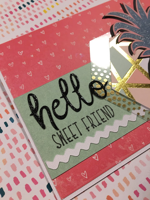 In the Cricut Design Space cut file I created two pineapple images. One is a print then cut and the other is an actual image to cut. I chose the print then cut because it save a lot of time. To give her face some life I used Clear Wink of Stella on her cheeks then used Ranger Glossy Accents for her eyes, mouth, and cheeks. For her flower I added dots of Ranger Glossy Accents to create some texture.
