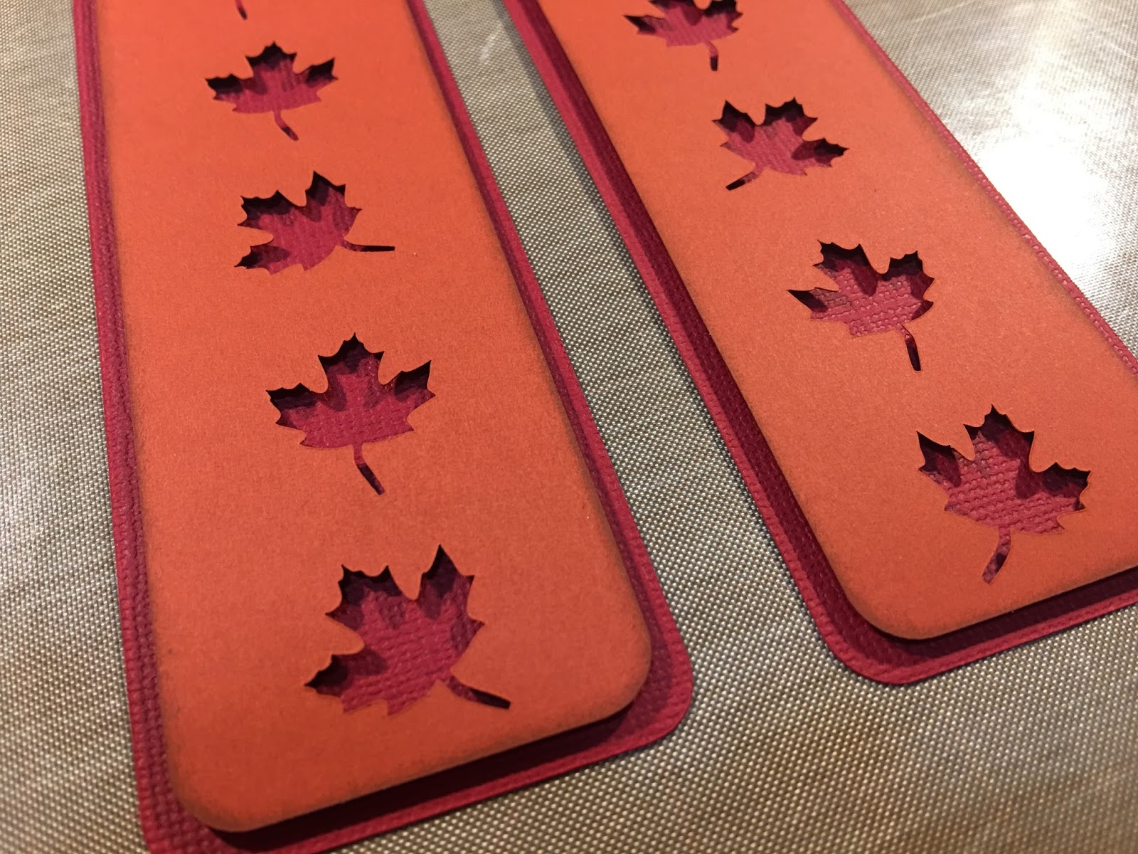For the gatefold card I chose warm tones for my papers and some patterned papers to add texture. This gatefold card measures 5.5″ x 4.25″. I inked most of the edges with Distress Inks and used foam adhesive on the front panels to create dimension. I used the leaf negative cuts to decorate the inside of my card. I finished it off with some linen twine from Stampin’ Up. Below are some process photos as I put this card together; instructions are included with the SVG file.