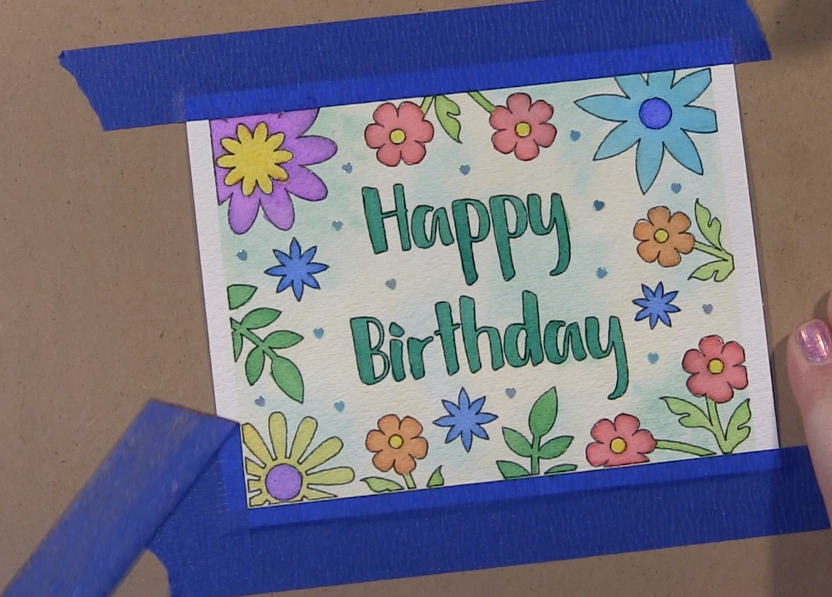 Important tip when removing the painters tape when you are done is to remove it at a flat angle to prevent tearing of the watercolor panel – see below.