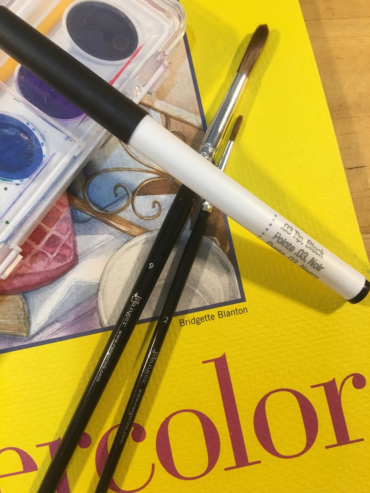 Other supplies I used was a simple hardboard clipboard I purchased from Walmart and some painters tape. This is used to tape the watercolor panel down to decrease warping and it really does work.