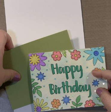 When the panel is cut out it will measure slightly under 4.25″ x 5.5″. I used a green panel which measures 4.25″ x 5.5″ as an accent piece. And I used a standard A2 top folding landscape card base.